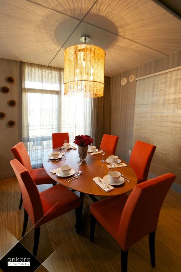 Yemek alanı açık bir planın parçasıysa, odanın geri kalanıyla eşleşmelidir.